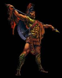Ares - Deus da guerra, filho de Zeus e de Hera. Deleitava-se com a guerra pelo sei lado mais brutal, qual seja a carnificina e o derramamento de sangue. Inimigo da serena luz solar e da calmaria atmosférica, ávido de desordem e de luta. Ares era detestado pelos outros deuses, o próprio Zeus o odiava. Tinha como companheiros nas lutas Éris, a discórdia; Deimos e Fobos, o espanto e o terror, e Ênio, a deusa da carnificina na guerra. Amou Afrodite, da qual teve Harmonia, Eros, Anteros, Deimos e Fobos.